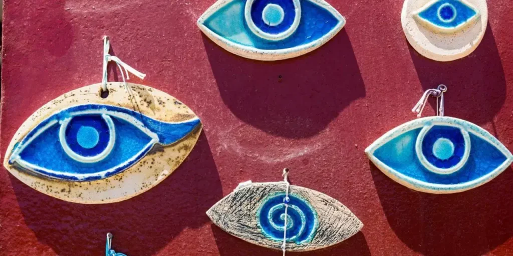 The Evil eye goes back to the dawn of man. It is believed with a stare or glare from a negative person or dark soul will cause one to have a sickness come upon them or a severe migraine or headache and misfortunes follow.